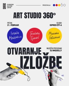 Zato vas pozivamo na otvaranje izložbe 🎨Art Studio 360 🎨, koji dijeli našu viziju – približiti umjetnost ljudima i podržati mlade stvaraoce.