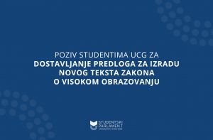 U skladu sa dosadašnjom praksom, a u želji da predlog SPUCG bude što kompletniji, ovim putem upućujemo poziv svim studentima da nam pomognu na način što će svoje predloge za izradu novog zakona dostaviti upravi SPUCG.