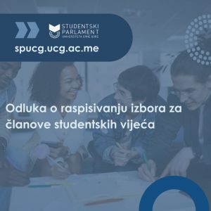Na osnovu čl. 50 stav 1,2 i 4 Statuta Studentskog parlamenta UCG i člana 36 Poslovnika o radu studentskih vijeća, predsjednik Studentskog parlamenta UCG i predsjednik Univerzitetske izborne komisije (UIK) Jakov Vukčević, raspisao je izbore za članove studentskih vijeća na 8 univerzitetskih jedinica zbog isteka mandata poslednje validno konstituisanih skupština predmetnih studentskih vijeća.
